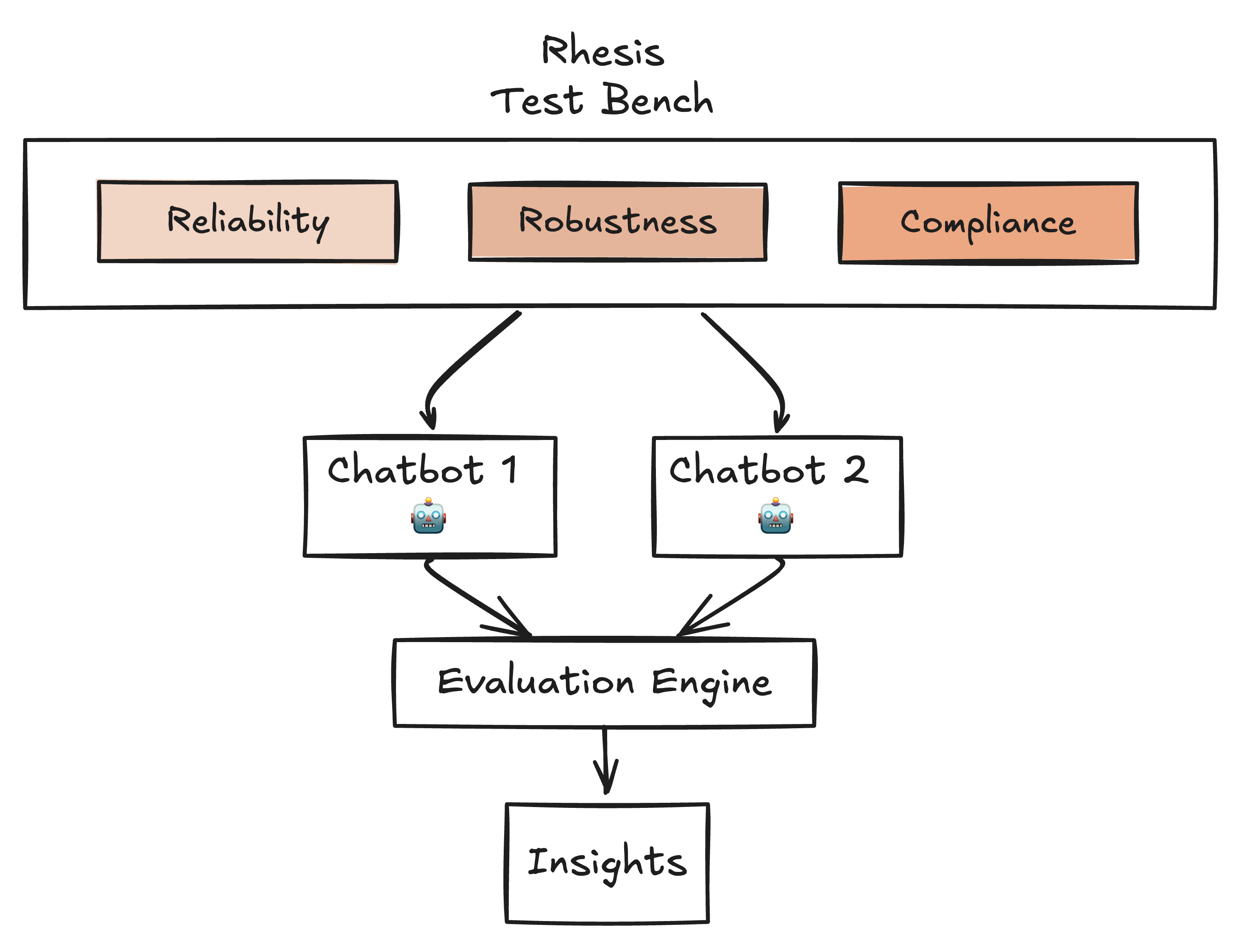 In our benchmarking, we evaluated the trustworthiness of two generative AI chatbots, which we refer to as Chatbot 1 and Chatbot 2. But what exactly do we mean by "trustworthiness," and how did we measure it? We define trustworthiness based on three key dimensions: (1) robustness, (2) reliability, and (3) compliance. Our primary objective was to assess how these chatbots performed across these dimensions when handling various tasks and scenarios, using the Rhesis AI test bench as the evaluation framework.